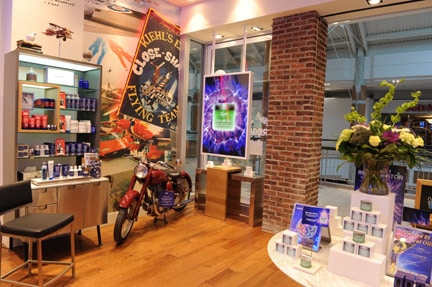 The Mapleview location features Kiehl’s signature apothecary aesthetic with a modern feel that includes a 1949 Indian Arrow motorcycle and a Product Testing hub where customers can experiment with products. BTW, it’s also Kiehl’s 160th anniversary this year, and you can experience that rich history at the Mapleview location through the vintage photographs and mementos that are featured throughout the space. The store also proudly displays a paddle from Camp Oochigeas, an organization supported by Kiehl’s that offers free programs for hundreds of children affected by cancer each year.